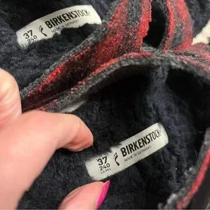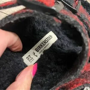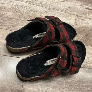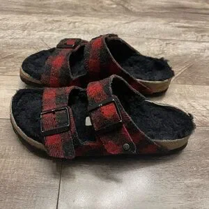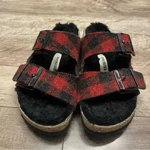 BIRKENSTOCK Sz 37 Arizona Rivet Shearling Sandals RED PLAID Wool (W6 M4)