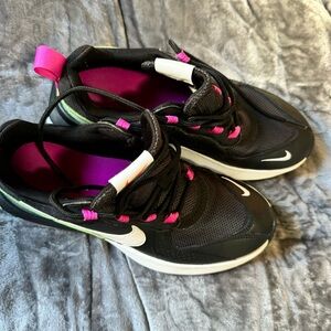Vibrant Nike sneakers with a black and mint color scheme. Features a comfortable fit and stylish design. Ideal for active kids.