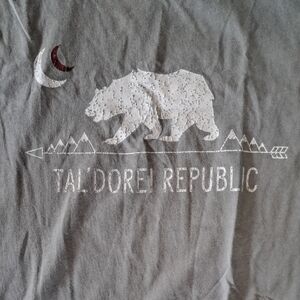 gray tank top with a white bear graphic. Soft, breathable fabric for everyday wear. Sleeveless cut for warm-weather comfort. Features subtle moon and mountain screen print detail.