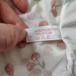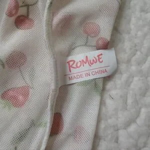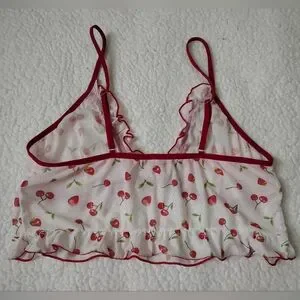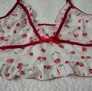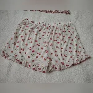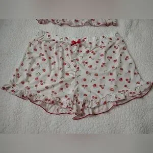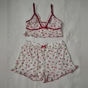 NWOT Romwe women's large 2-piece pajama set with cherry and strawberry print. So cute! Straps on the top are adjustable. Both shorts and top are thin and see-through.