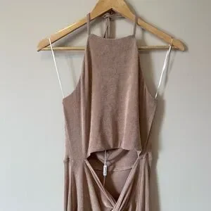 Petal & Pup Sandy Gold Metallic Scarlette Halter Cutout Maxi Dress Size 12