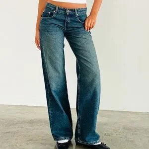 Motel Rocks Low Rise Parallel Jeans Bright Blue Size 24