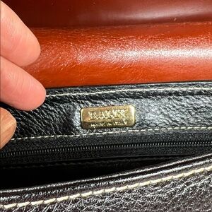 Crafted in Italy, this piece features a sophisticated play on textures, combining supple black pebbled leather with a smooth, rich oxblood brown leather flap and trim. Its timeless, minimalist silhouette and understated aesthetic make it a versatile staple for any wardrobe.