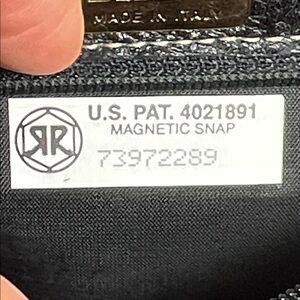 Hardware: Gold-tone Bally logo plaque on front flap; branded snap closure