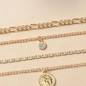Gold 1pc Coin Multi Layered Chain Necklace