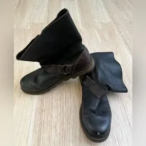 Sorel Black Leather Pull-On Boots with Brown Strap Accent