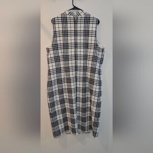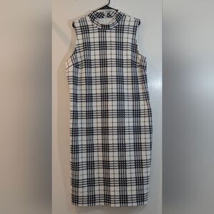 plaid dress, mock neck, sheath dress, size 18/20w, plus size, 20w, dark academia, corpcore, mod aesthetic, 60s style, minimalist, professional, office wear, workwear, capsule wardrobe, black and white, check print, sleeveless dress, elegant, modern uniform.