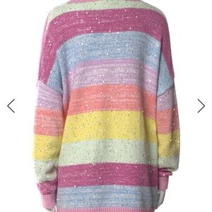 Pastel Rainbow Striped Sequin Cardigan Sweater - Pink