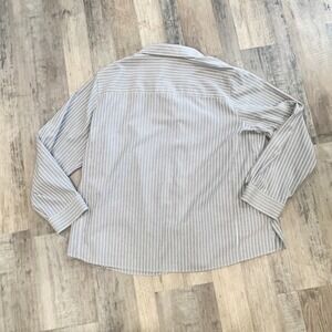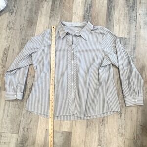 Foxcroft Womens 20W Grey White Striped Wrinkle Free Shaped Fit Button Down Shirt