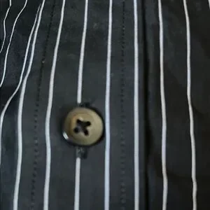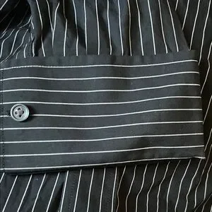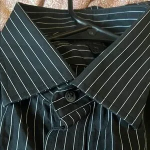 Express Design Studio Premium Woven Cotton Size XL 17-17 1/2 Modern Fit Like Preowned New Good Condition Men’s Black With White Stripes Please Note No Returns!!!! No Refunds Sold As !!!!!! Feel Free To Ask Questions Before Purchasing For smooth Transaction I Be Free To Ask No Problem The Button Has Little Small Stains But Are washable Not Noticeable As Seen On Photos 1-2 Day Shipping Depends On Carrier Availability To Shipping Out 19$ Oh Best Offer Accept .