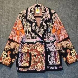 Farm Rio Women's Black Sweet Mermaids Knit Wool Jacket Size XS