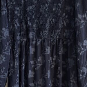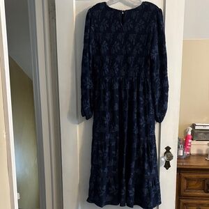 Elevate your wardrobe with this chic navy blue dress. Designed for elegance and comfort, it's perfect for any occasion. The long sleeves and floral pattern add a sophisticated touch.