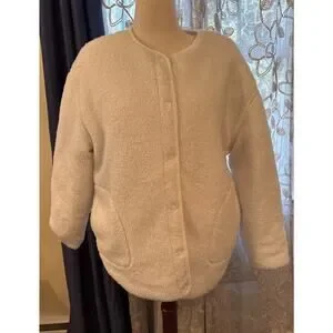 Haven Well Within Talbots White/ Ivory Reversible Sherpa Quilted Jacket Size L