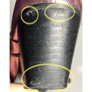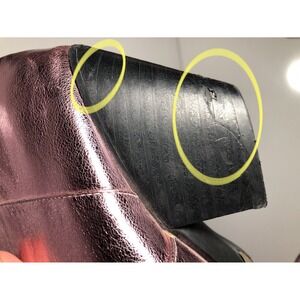 Condition: Fair — noticeable wear to the heels (scuffs, scratches, surface chips), light scuffing and minor stains inside and on upper lining, general signs of wear consistent with previous use.