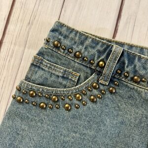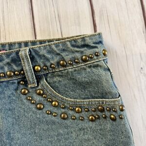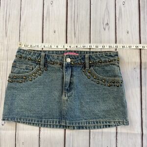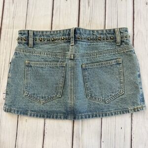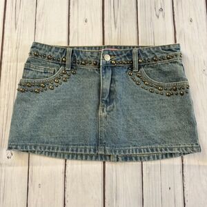 Edikted Studded Denim Mini Skirt Y2K Low Rise Blue Jean Festival Size S