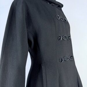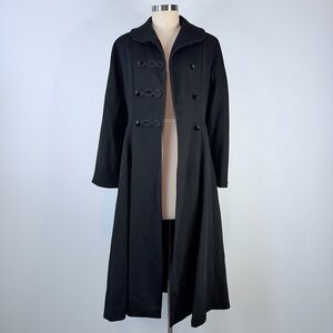 Vintage Ransohoffs 60s Black Wool Princess Coat Frog Closure Jacket XS S