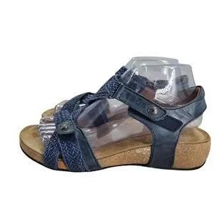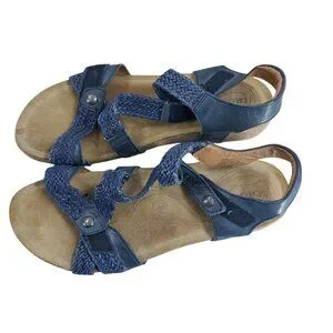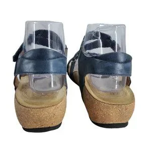 Taos Universal Blue Leather Comfort Wedge Sandals Size 38 US 7-7.5 Adjustable