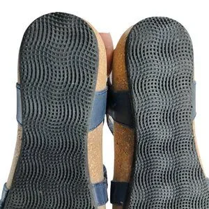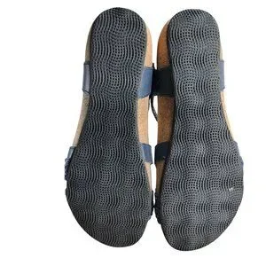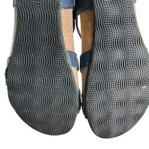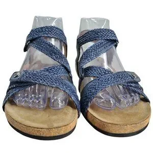 Design: Classic blue leather strappy wedge sandals with adjustable hook & loop closures