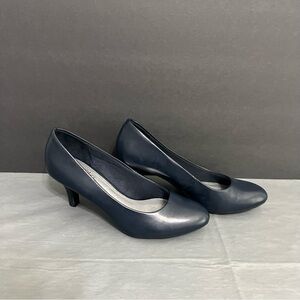 Life Stride Navy Leather Round-Toe Dress Pumps