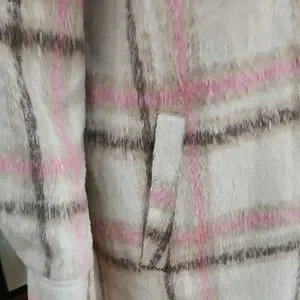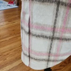 NEW - 7 FOR ALL MANKIND Pink & Cream Plaid Shacket Duster Coat
