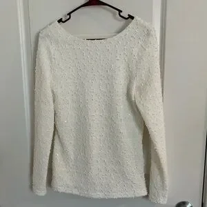 Jennifer Lopez White Textured Knit | Size M | Subtle Sparkle