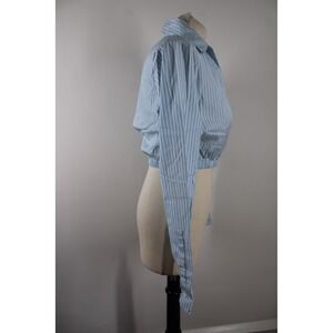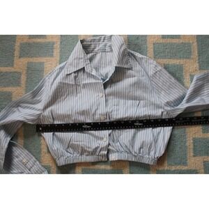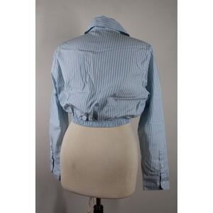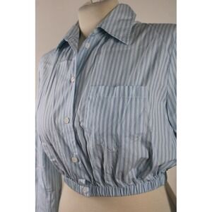 Maje Size M? Blue Striped Poplin Cropped Button Down Shirt Top Elastic Hem
