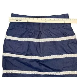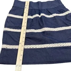 Banana Republic Elastic Waist Chambray Cotton Blend Skirt With Crochet Detail 4