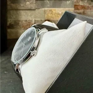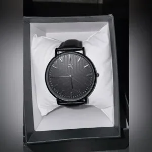 Brand new PX men’s watch with a sleek, minimalist design. This watch features a black leather strap and a modern textured black dial with subtle silver-tone markers. It has a clean, sophisticated look that works perfectly for both everyday wear and dress occasions.