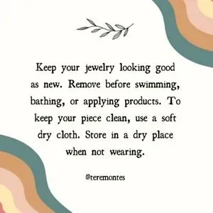 👉Keep your jewelry looking good as new. Remove before swimming, bathing, or applying products. To keep your piece clean, use a soft dry cloth. Store in a dry place when not wearing.