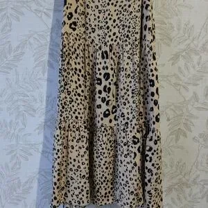 Embrace your wild side with this chic leopard print halter dress. Perfect for any occasion, this tan and black dress offers a stylish and comfortable fit.