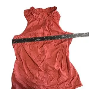 Athleta Rust-Red Terracotta Orange Ruffled High Neck Sleeveless Drawstring Tunic