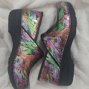 dansko professional clogs, dansko xp 2.0, dansko tropical garden, dansko patent leather clogs, floral dansko clogs, botanical clogs, colorful clogs, nursing clogs, healthcare shoes, slip resistant clogs, comfort clogs, rocker sole clogs, dansko size 39, womens dansko clogs, professional work shoes