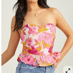 NWOT Altar'd State Floral Jacquard Peplum Corset Top