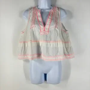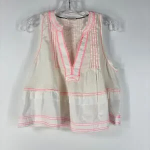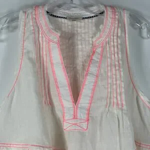 Pilcro Anthropologie Women's Top S White Raw Edge Linen Swing Coastal Boho