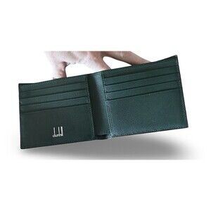 DUNHILL Bi-fold billing Club line brown mahogany green enamel leather Authentic