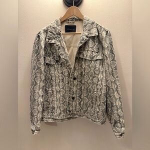 BLANKNYC Snake-Print Jean Jacket in Gray and White
