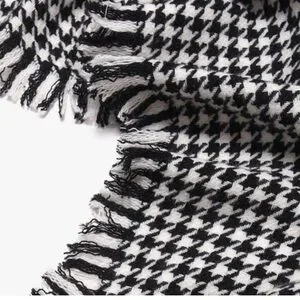 Black & White Houndstooth Fringe Scarf High Grade Large Oversized Shawl Wrap NEW