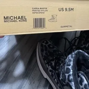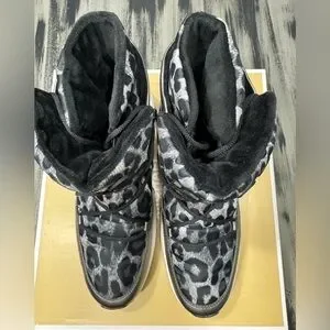 Michael Kors Cassia Black and Gray Cheetah Print Ankle Booties Size 9.5