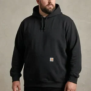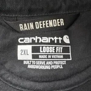 Stay dry and comfortable with this heavy-duty Carhartt Rain Defender sweatshirt. Designed for hardworking people, this loose-fit hoodie features a water-repellent finish, durable cotton-blend fabric, and a classic kangaroo front pocket. Perfect for workwear, gorpcore, or casual streetwear aesthetics.