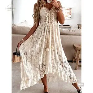 Brand new, never worn, and in flawless condition — this elegant lace maxi dress delivers a beautiful, elevated look perfect for beach vacations, summer events, or dressing up for a special occasion. The fit is flowy, flattering, and incredibly comfortable.