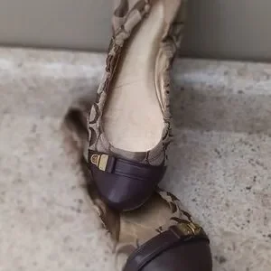 Coach Brown Signature Canvas Ballet Flats with Dark Brown Cap Toe
