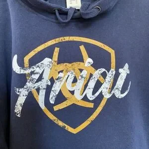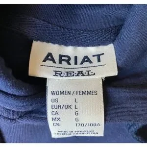 Ariat Real Navy Blue Hoodie Sweatshirt Women Size L Shield Graphic Logo NWT Gift
