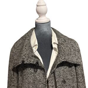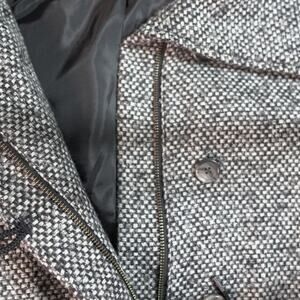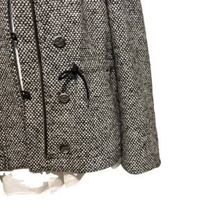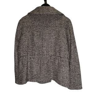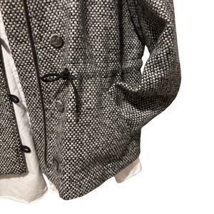 Ann Taylor Loft Tweed Coat Double-Breasted Drawstring Waist Collared Grey Sz XL