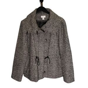 Ann Taylor Loft Grey Tweed Coat XL Double-Breasted Drawstring Waist