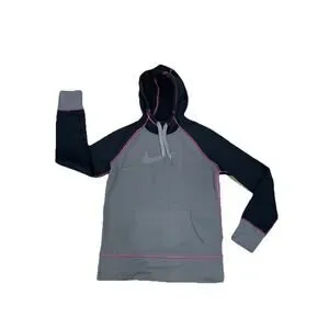 Nike Therma-Fit Hoodie Women’s Sz Medium Gray/Black/Pink Thumb Holes Activewear