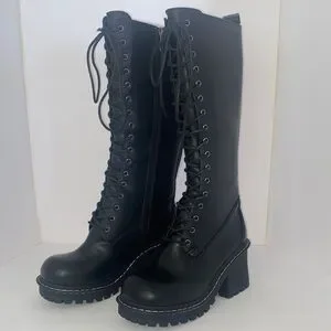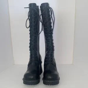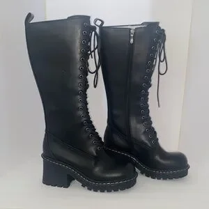 NWOB- Dolls Kill Current Mood Black Lace-Up Knee-High Boots