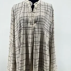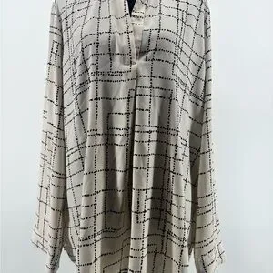 Prologue women’s Cream Polyester Top with Black Dot Grid Detail size XXL