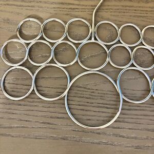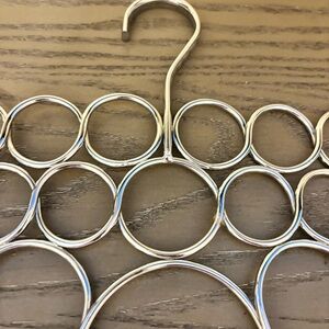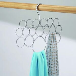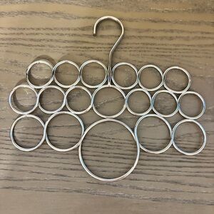 Stylish and functional scarf hanger. Ideal for organizing accessories. Sleek silver finish.