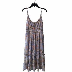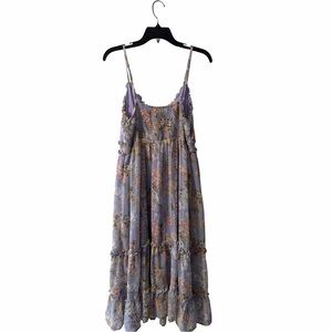 Limelush Purple Floral Tiered Boho Midi Dress Size Large