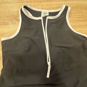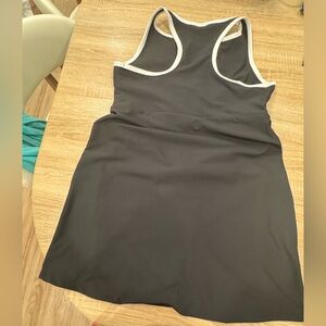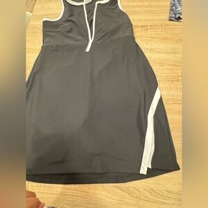Elegant gray midi dress with white accents. Sleeveless design. Perfect for any occasion.